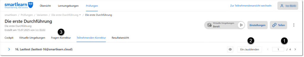 In der Teilnehmenden-Korrektur haben Sie die Möglichkeit, die vollständige Prüfung von Teilnehmenden zu korrigieren.
