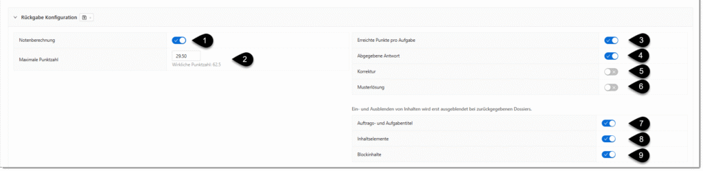 Sie können alle Konfigurationen (3) bis (9) deaktivieren, wenn Sie ausschliesslich die Note den Teilnehmenden zurückgeben möchten.