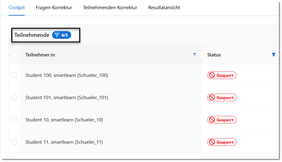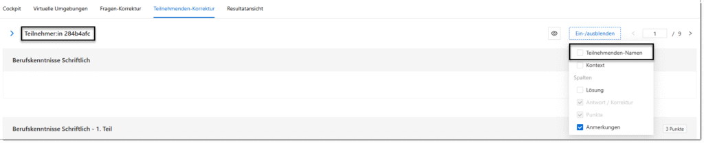 Sofern diese Option bei der Teilnehmenden-Korrektur ausgewählt wird, werden die Namen der Teilnehmenden anonymisiert.