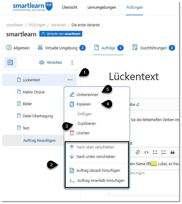 - Inhaltsblöcke zur Erstellung von Aufträgen und Aufgaben